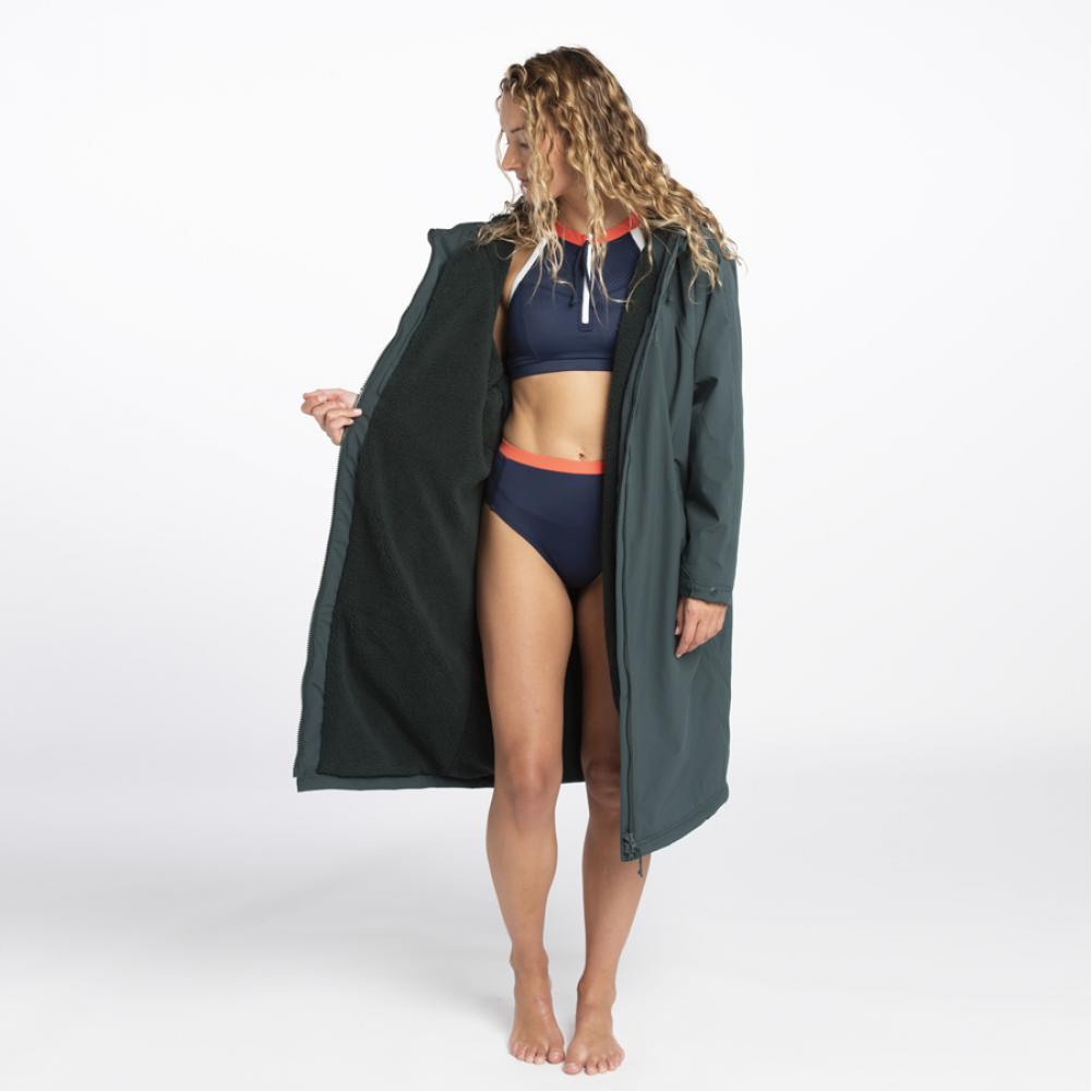 Use it to warm up after a session in or on the water, or to cover up between dives. This robe is fully fleece-lined for after-swim warmth and is made using approximately 50 recycled plastic bottles.
