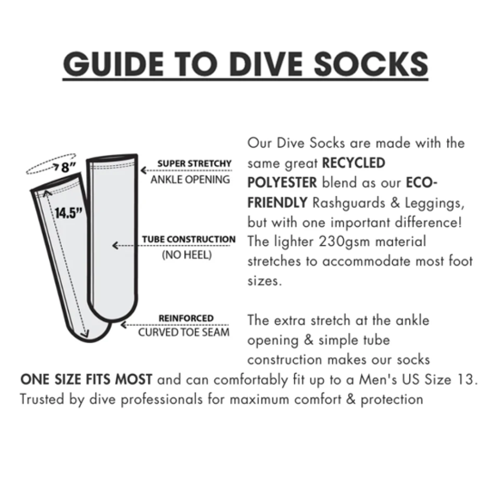 Fins can be rough on your feet. Slip into these comfortable Dive Socks, made from the same eco-friendly material as SpaceFish Army's Quick Dry & Comfortable Leggings. Graphics are sublimation printed, giving you a bold, all-over design.