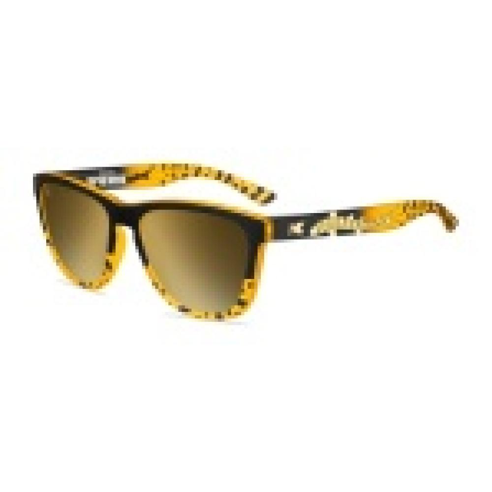 Dive into the wild side with the 2025 Shark Week Premiums. Each pair features a fierce black and yellow front with bold leopard shark patterns swimming across the arms. Striking gold mirrored lenses, signature gold K logos, and polarized protection deliver high-quality performance to match their eye-catching design.